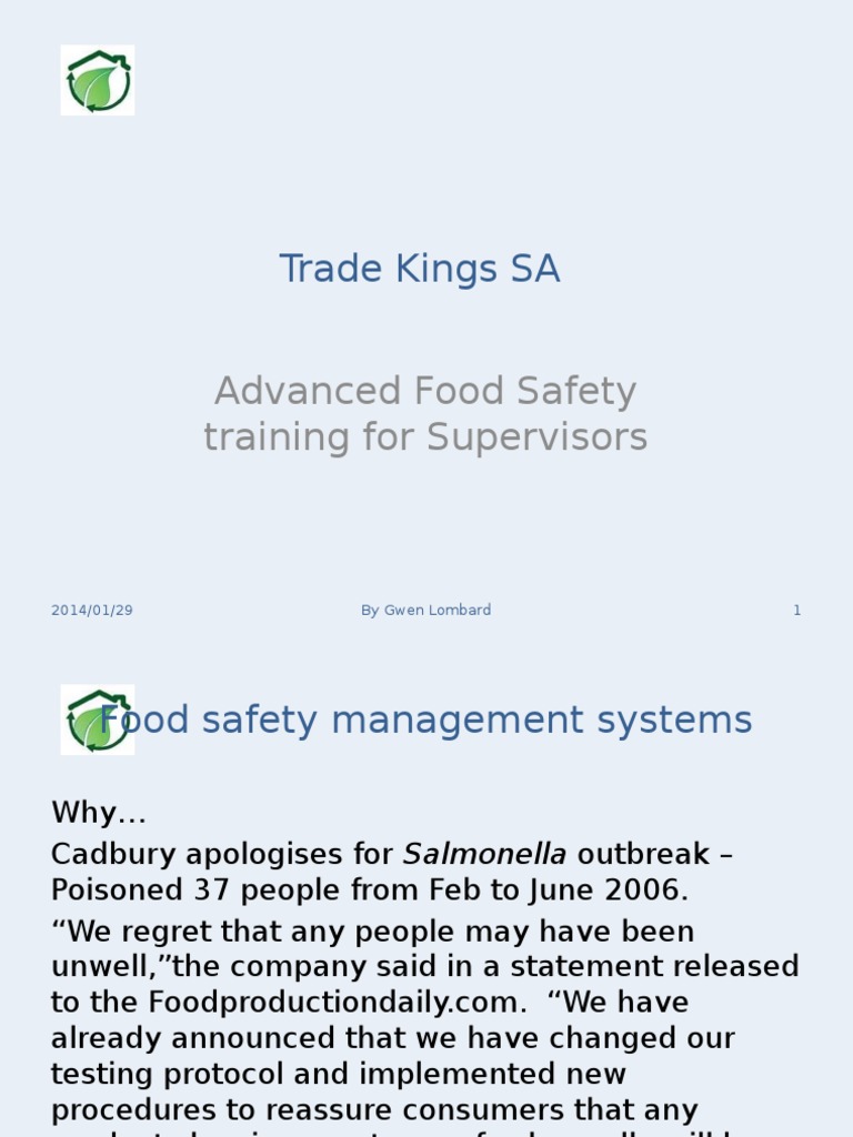 Learning from major incidents cadbury salmonella outbreak— presentation transcript